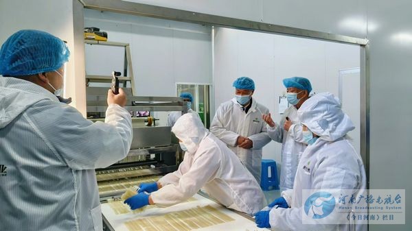 走进红薯鲜粉条智能化生产车间,孙继周面对镜头介绍了红薯鲜粉条生产工艺和产品特点。盛田农业只做让自己爹娘放心吃的粉条,生产的红薯鲜粉条,无科技狠活,未添加木薯淀粉,未添加明矾,未添加防腐剂,未使用硫磺熏,未添加食用胶、未添加人工色素,并且独立包装干净卫生,打开即可加工食用,被农业农村部授予“全国名特优新农产品”,通过国级A级绿色产品,已出口到英国、美国、韩国、澳大利亚、柬埔寨,实现了禹州农产品走出国门的零突破。同时,盛田农业成为海底捞、锅圈食汇、胖东来等大连锁企业和超市的供货商。 (仓超)