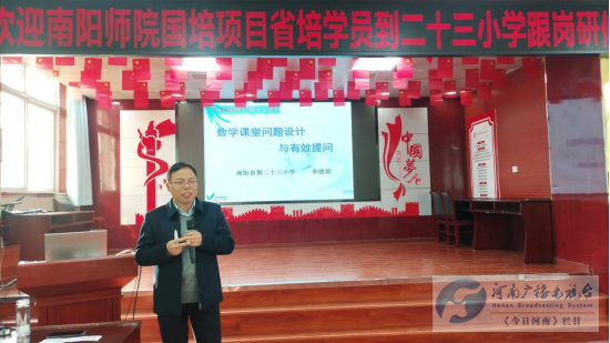下午,来自我校的南阳市名师工作室主持人和建朝老师以《数学课堂问题设计与有效提问》为题,与大家分享了自己多年的教学心得和对数学教学的点滴思考。