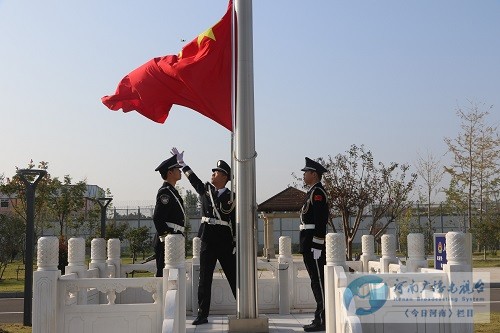 伴随着雄壮激昂的《义勇军进行曲》,鲜艳的五星红旗冉冉升起。全体警察、戒毒人员肃立行注目礼。嘹亮的国歌声响彻全场,目光中满含对祖国的无限崇敬与深情祝福。