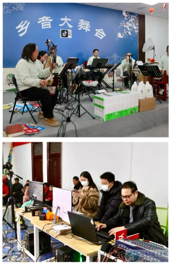 每晚夜幕降临,18点50分,河南省荥阳市广武镇任河村“乡音大舞台”直播间灯光亮起,悠扬二胡旋律伴着豫剧唱腔透过手机屏幕传遍全网。返乡青年郑州市祥喆农牧养殖设备有限公司总经理燕小伟(党员)化身为主播,他手持话筒统筹全场,妻子任君端坐乐队中拉动琴弦,瞬间,乐队、演员、观众、线上线下的互动,让沉寂的乡村夜晚变得热闹非凡,单场最高在线超2万多人,这对返乡夫妻以“乡音大舞台”为载体,用“文化+直播+产业”的创新模式,践行着“有才你就来”的初心,为乡村振兴注入了鲜活动能。