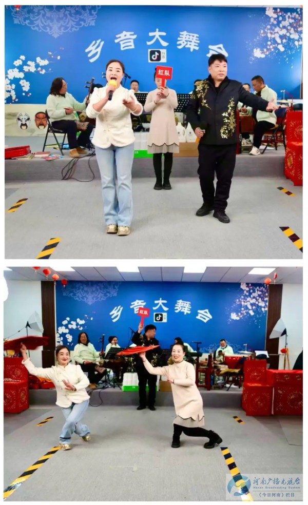 “乡音大舞台,有才你就来”,直播间里满是最地道的中原风情。“不管是专业演员还是田间戏迷,只要有才敢登台,我们就给你舞台!”这是燕小伟和任君常说的话。他们在抖音开设账号,固定时段直播演出,从《穆桂英挂帅》、《朝阳沟》等经典剧目到村民自编自演的乡土小调,都能在直播间精彩呈现,每一段表演都凝聚着家乡的共鸣,让中原大地的文化基因在流量时代生生不息。