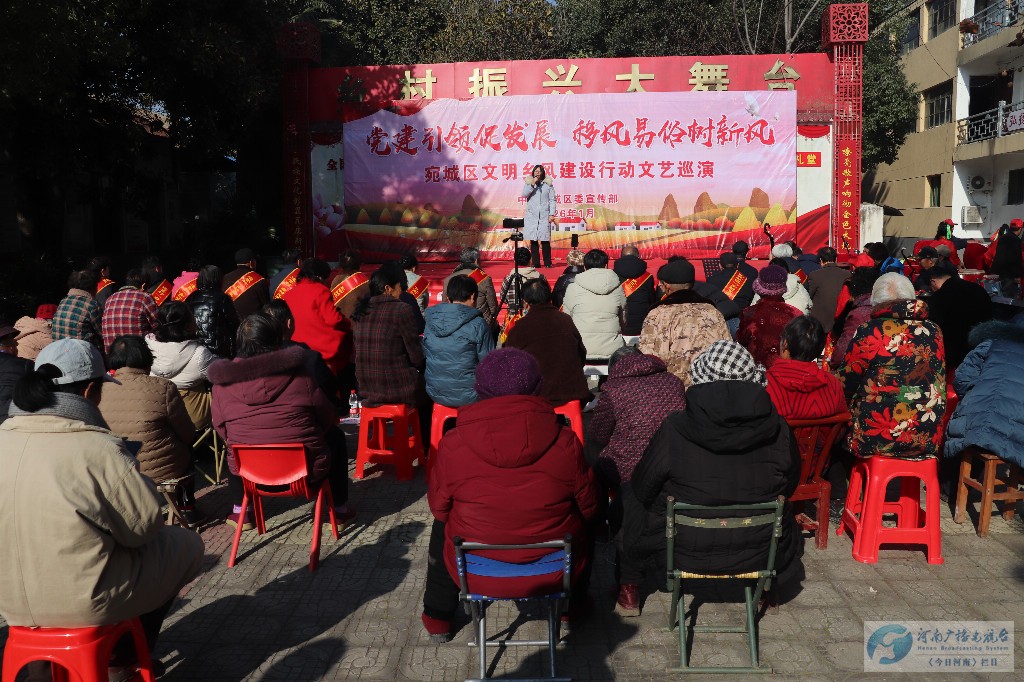 为深入贯彻落实乡村振兴战略部署,扎实推进文明乡风建设,1月13日,区委社会工作部联合区委宣传部、瓦店镇等,在瓦店镇逵营村文化大舞台共同举办“党建领航促发展 移风易俗树新风”文明乡风建设行动文艺汇演。活动以群众喜闻乐见的形式,将政策宣讲、文化浸润、惠民服务深度融合,为基层群众送上一场兼具思想性与观赏性的文明盛宴,激活乡村文明“一池春水”。