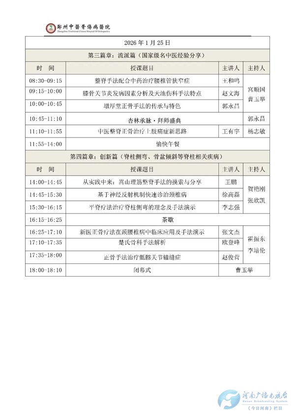 (三)实战篇:针对颈痛、慢性非特异性腰背痛、颈椎病、腰椎间盘突出症、腰椎滑脱症、腰椎管狭窄症、青少年特发性脊柱侧弯、脊柱源性疾病等相关疑难病症,开展学术报告与实战交流;涵盖手法诊治、练功疗法、针灸(含针刀)、超微创治疗等临床技术分享,以及脊柱健康管理、亚健康保健、药品器械研究等实战经验。