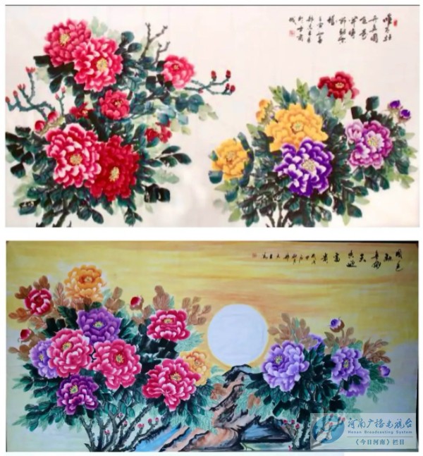 牡花开雍容华贵。郭志臣的牡丹融合了工写两法,花瓣层层叠叠,设色浓淡相宜,艳而不俗,雅而不寡。无论时雍容华贵的满堂春色,还是疏朗雅致的一枝独秀,他笔下的牡丹都兼具风骨与柔情,既传承了千年牡丹文化的厚重,又融入了当代审美视觉,赢得业内专家与书画爱好者的广泛赞誉。