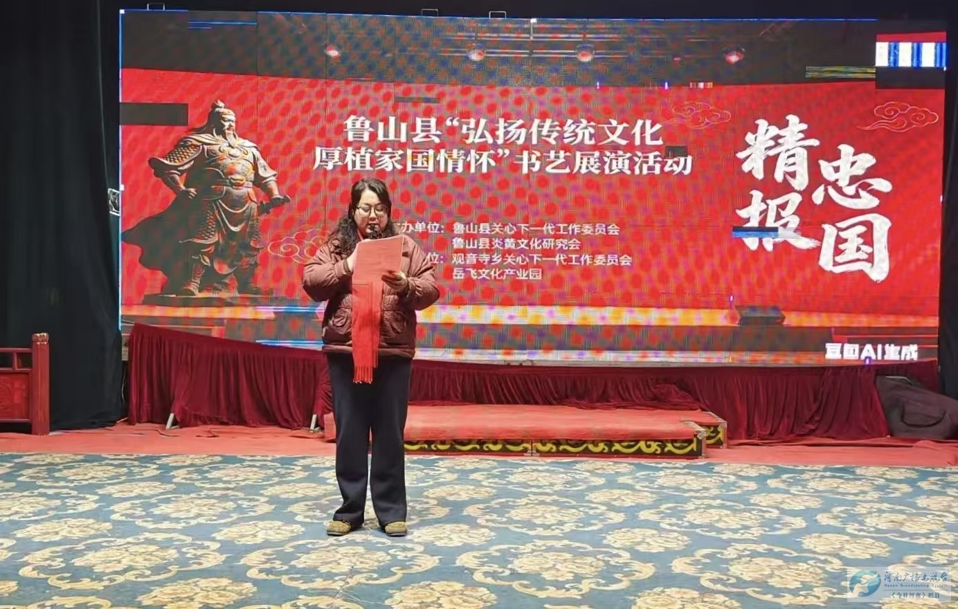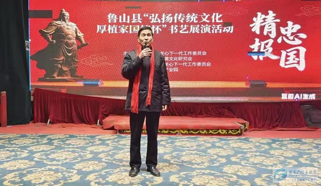 “怒发冲冠,凭阑处、潇潇雨歇……”八百年前的气节绝唱,于2025年1月25日细雨严寒之日,在鲁山县观音寺乡岳村爱红大剧院再度激昂响起。一场以“弘扬传统文化厚植家国情怀”为主题的书艺展演在此拉开序幕,礼、乐、书、诵交融,深深叩击着现场千余人的心扉。