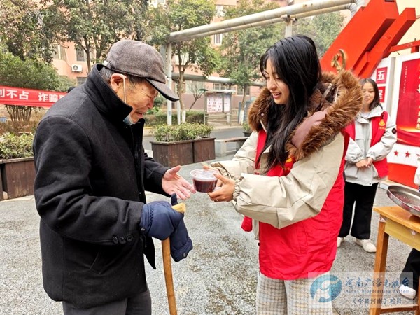 随后,志愿者们带着封装好的热粥与新春福字,踏着晨光上门走访。接过温热的粥碗,王奶奶感动地说:“每年腊八都能收到社区的关怀,这粥喝在嘴里,暖在心里!”
