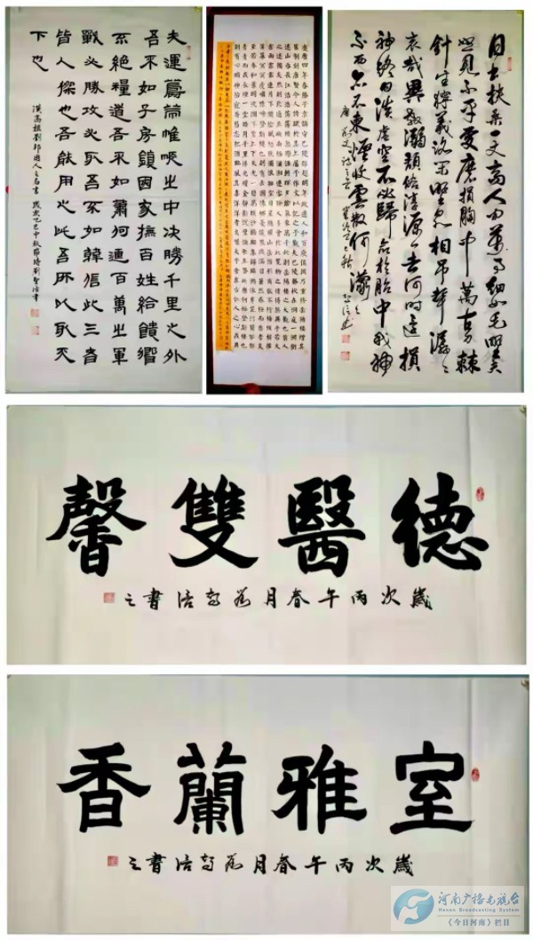 刘志信自幼浸染中原文化的深厚底蕴,与书画结下不解之缘,少年时便潜心研习传统书画技法,于碑帖古画中探寻艺术真谛。书法之上,他遍临颜柳欧赵诸家碑帖,兼修行草隶篆,博采众长而自成一格,笔下线条或刚劲如铁、力透纸背,或婉转如溪、飘逸灵动,提按转折间尽显笔墨韵味,将汉字的形与意、气与神诠释得淋漓尽致。