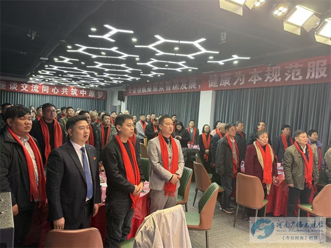 伴随着雄壮激昂的国歌旋律,全体参会人员肃立起立,齐声高唱中华人民共和国国歌,嘹亮的歌声响彻会场,尽显全体河南沐浴足浴行业同仁的家国情怀与奋进姿态,也为本次年会拉开了正式的序幕。