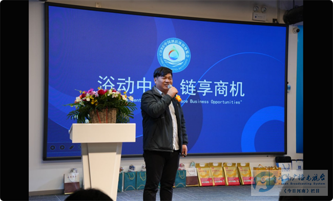 专委会副会长左浩上台做主题宣传演讲,正式向全场发布2026第七届中国(郑州)国际沐浴供应链博览会重磅信息。