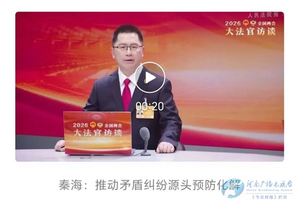 【主持人】:各位网友大家好,欢迎收看由人民法院报、最高人民法院网、中国法院网和天平阳光App联合推出的2026年全国两会《大法官访谈》节目。本期做客我们节目的嘉宾是河南省高级人民法院党组书记、院长秦海。秦院长,您好!