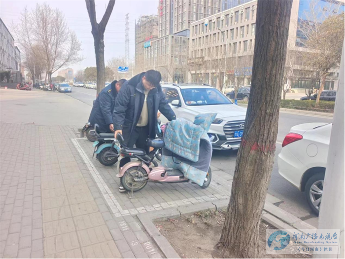 一是通过徒步巡查的方式在辖区内进行巡查,发现停放不规范的非机动车统一挪进停车线内,摆放整齐、朝向一致,并对骑乘人员进行劝导。二是强化宣传促引导,积极开展非机动车停放整治宣传工作,组织队员主动上门向沿街商户宣传城市管理相关法律法规,要求店主及时劝离店外人行道乱停乱放非机动车、共享单车,自觉维护店外秩序。