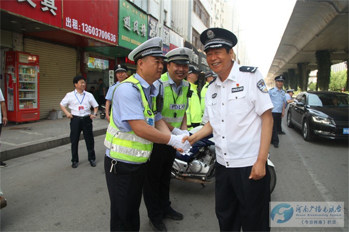 一大早,市局党委委员、交警支队长贾洪亮带领交警支队副支队长韩光辉、秩序大队大队长张伟到市区各考点督导检查周边交通安全管理工作情况。并看望一线执勤民辅警,与他们一一握手。