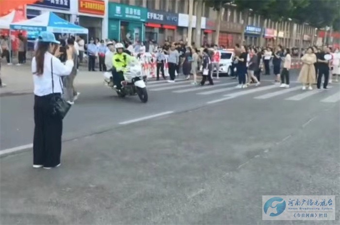 2024年6月7日上午7时55分许,商丘市昌华中学考点一位考生急急忙忙的跑到铁骑队员队员任鹏、张明身边说:“交警同志,现在快要考试了,我身份证忘记拿了,在归德路与胜利路交叉口三高附近,怎么办、怎么办......”,铁骑队员任鹏对考生说:“快!给你戴上头盔,上摩托车,我带你去拿”,迅速打开警灯,拉响警笛,来回仅用时12分钟取回身份证,考生顺利进入考场。