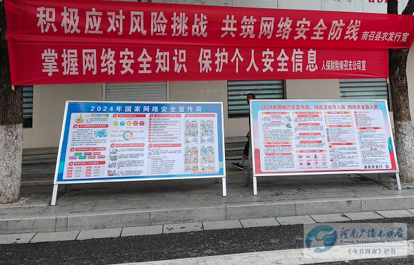 为了深入宣传普及网络安全领域重要法律法规,提高群众网络安全意识,农发行南召县支行紧扣“网络安全为人民,网络安全靠人民”的活动主题,于近日向公众普及金融网络安全知识。