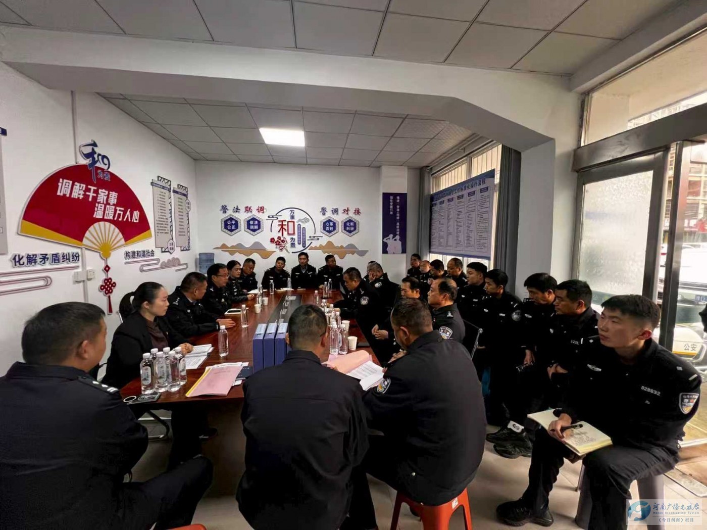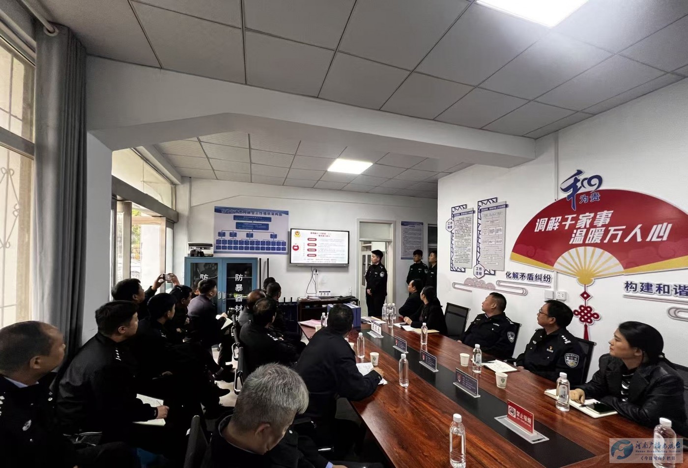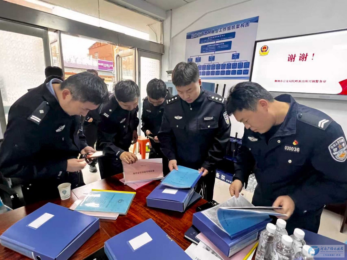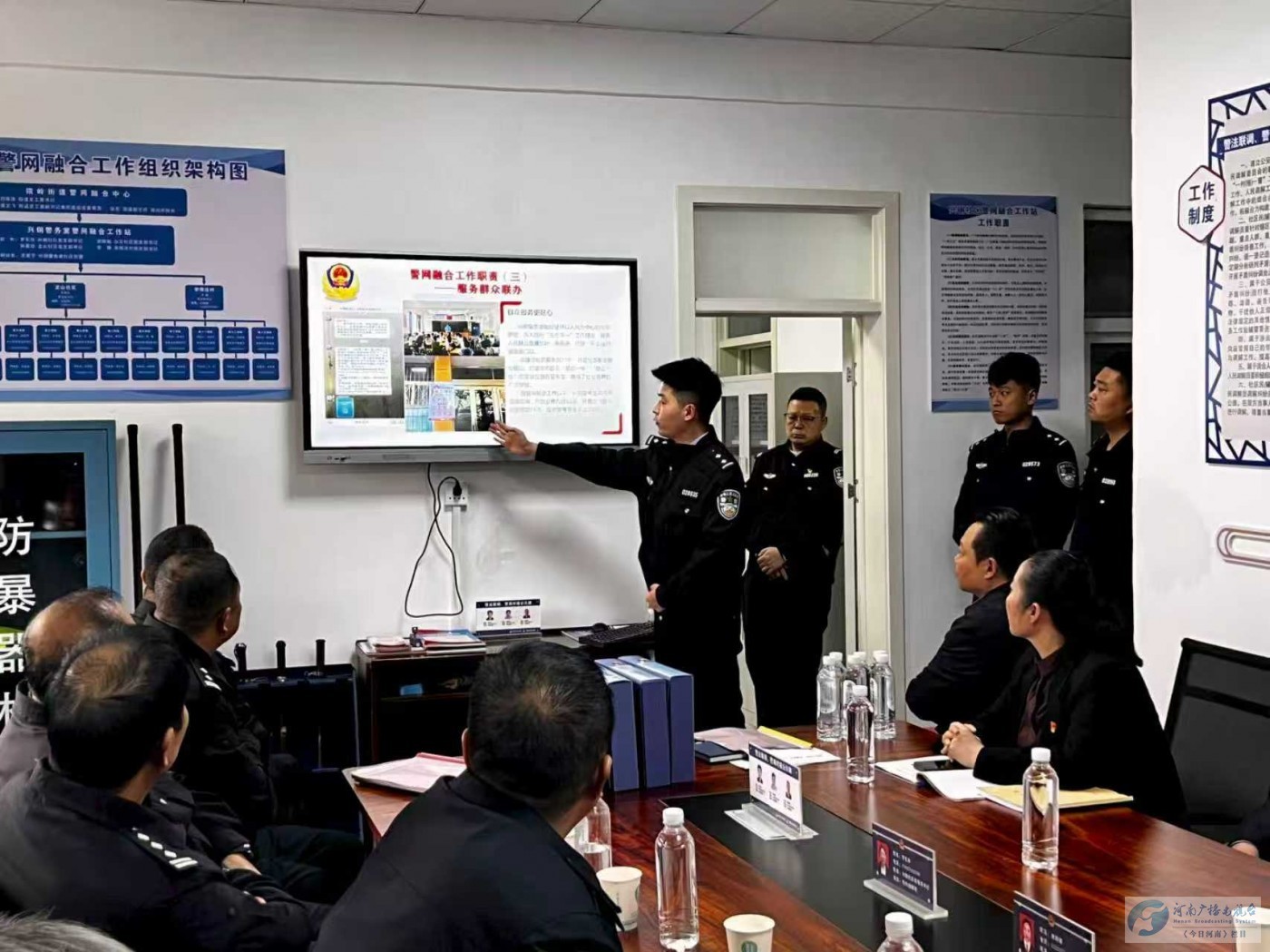 为深入推进全市“警网融合”工作,10月10日下午,舞钢市公安局组织各派出所负责人、“警网融合”试点村(社区)民辅警深入院岭派出所兴钢社区警务室、铁山冢李村警网融合工作站交流学习“警网融合”试点工作经验。在院岭派出所兴钢社区警务室,参会同志对该警务室“警网融合”组织架构、制度牌匾制作和工作台账进行了认真学习交流,民警王家宁就“警网融合”以来兴钢社区工作开展情况进行了专题汇报。院岭街道办主任、派出所所长、兴钢社区书记分别从不同层面介绍了“警网融合”工作经验和下步工作构想。在铁山派出所冢李村“警网融合”工作站,铁山派出所所长、冢李村书记、包村辅警详细分享了冢李村“警网融合”的总体规划,五项机制和六联职责实施经验及成效。各派出所负责人、社区民警辅警认真参观学习,并进行了经验交流。