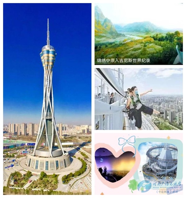 福塔通天直,威风八万里;中原文化囊括,成了百科库存;登高可摘星辰日月,一怀尽拥郑州城。