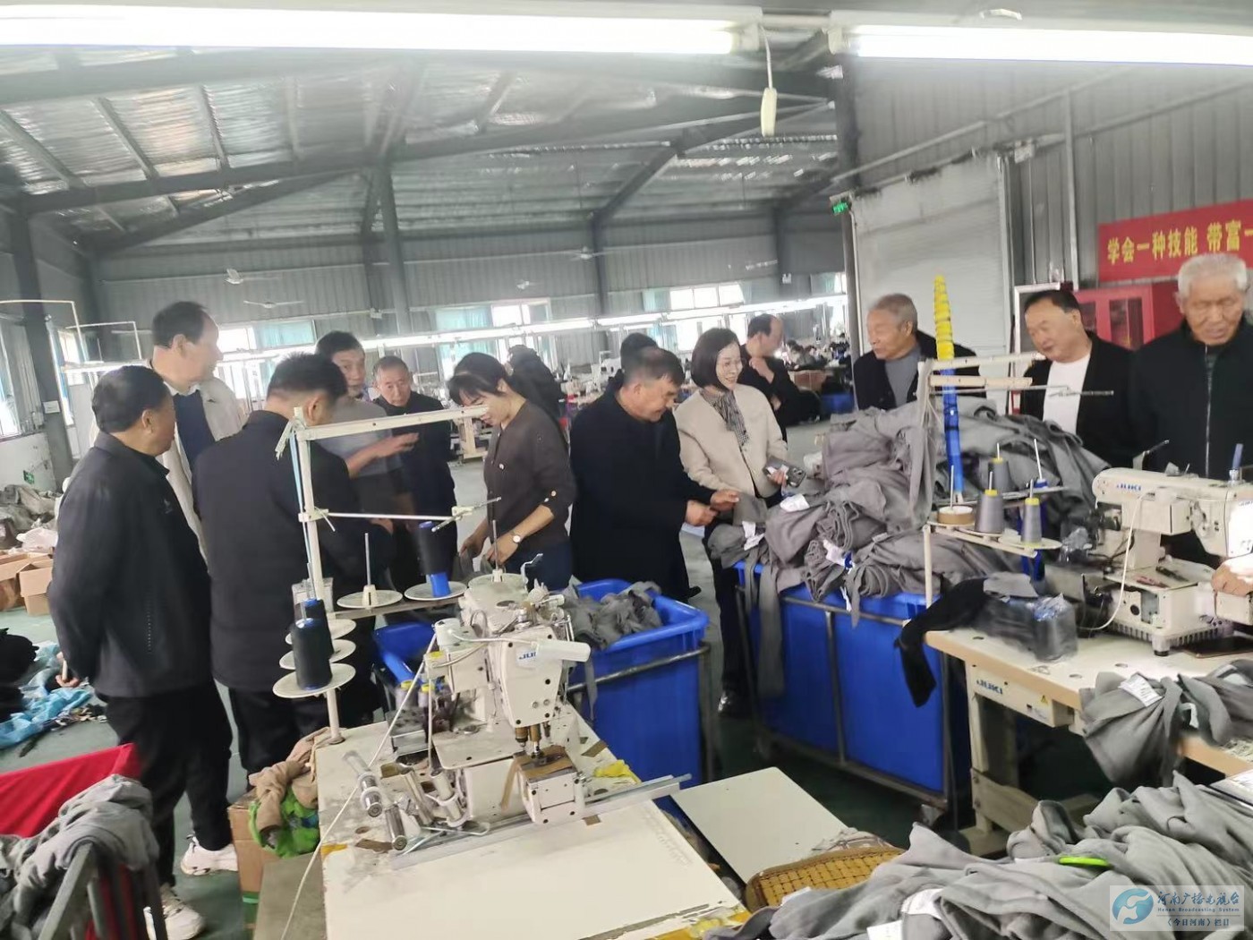 随后,老干部们走进顶门制衣厂和金岗村袜子厂的生产车间,机器轰鸣声中,工人们正忙着裁剪、缝纫、包装,一派热火朝天的景象。“现在村里办起了厂子,咱们老百姓在家门口就能就业,这村集体经济真是越来越红火了!”看到车间里整齐排列的生产线和琳琅满目的成品,老干部李主任说道。企业负责人笑着回应:“多亏了镇里党建引领的好政策,帮我们解决了用地、招工难题,现在产品不仅供应本地,还卖到了周边省市呢!”老干部们边看边点头,为镇里盘活村集体经济、带动群众增收的举措点赞。