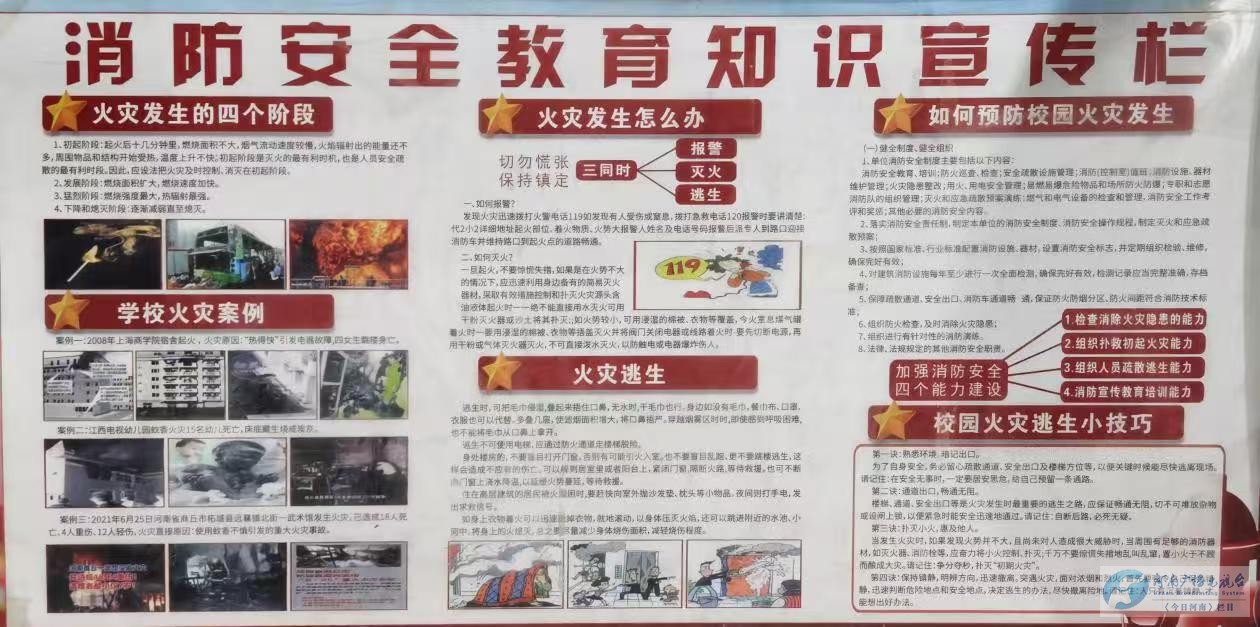在提升实操能力的同时,学校还通过消防安全专题班会、黑板报和安全橱窗等多样化形式,全方位强化师生的安全防范意识。课堂上,老师们生动讲述火灾案例,引导学生深入学习消防安全知识;校园里,精美的黑板报和内容丰富的安全橱窗吸引了师生们的目光,营造出浓厚的消防安全宣传氛围。