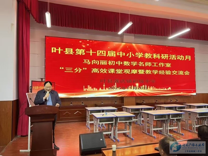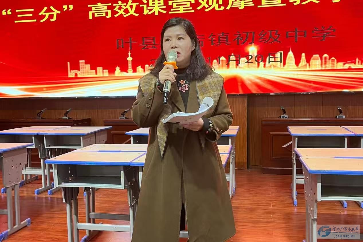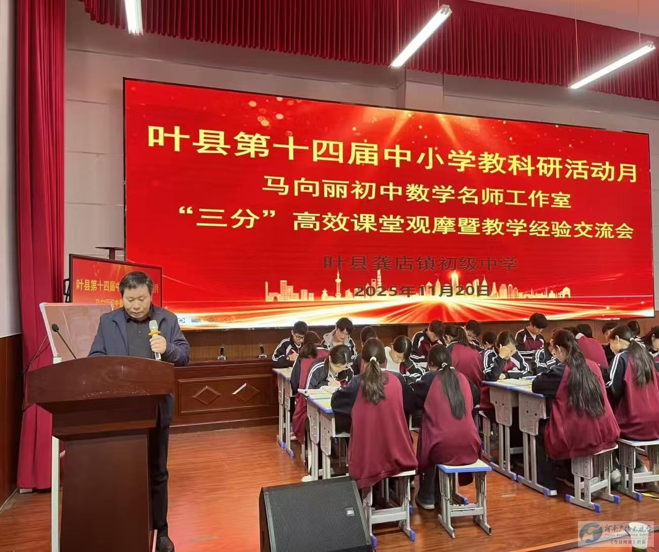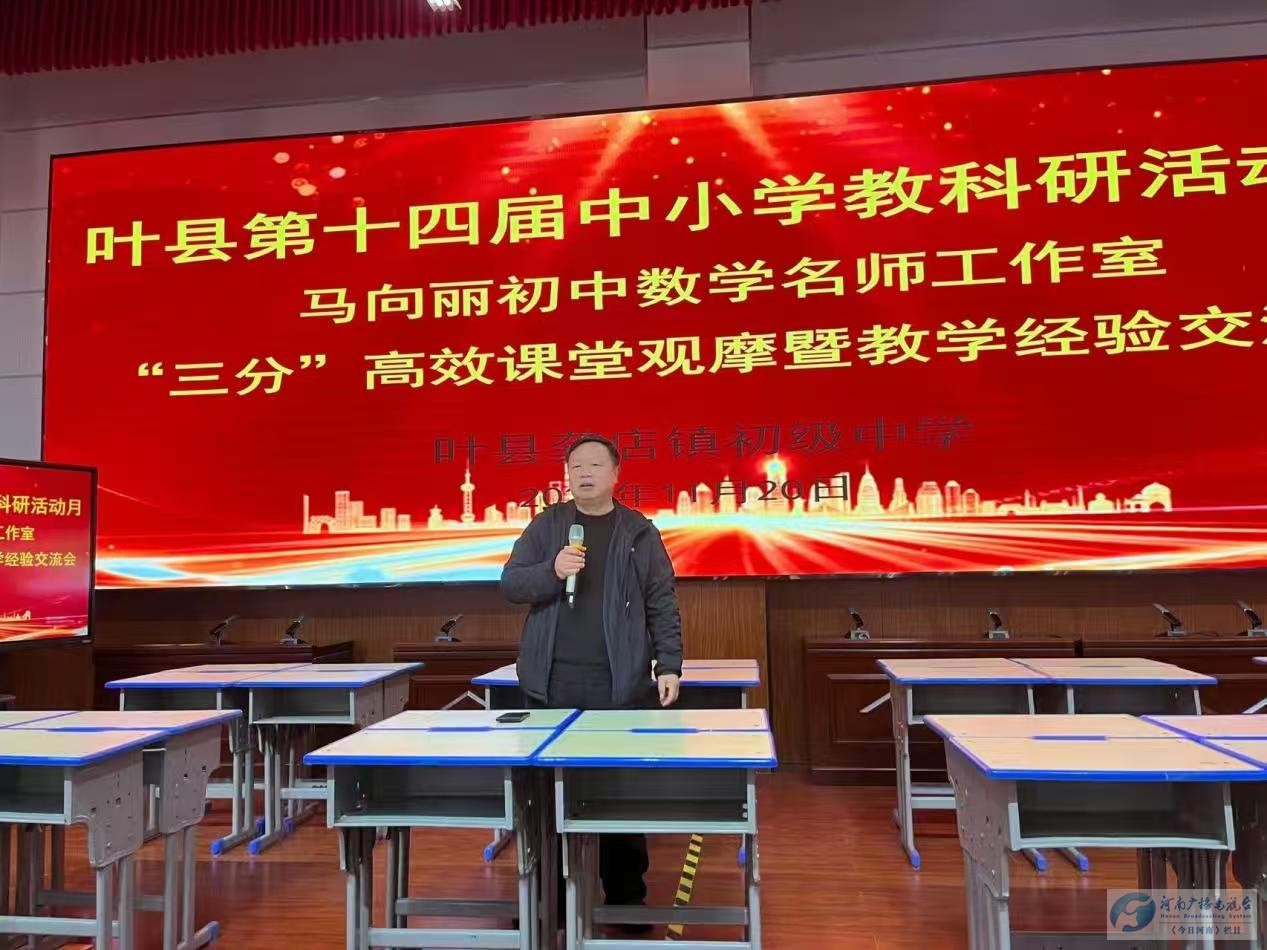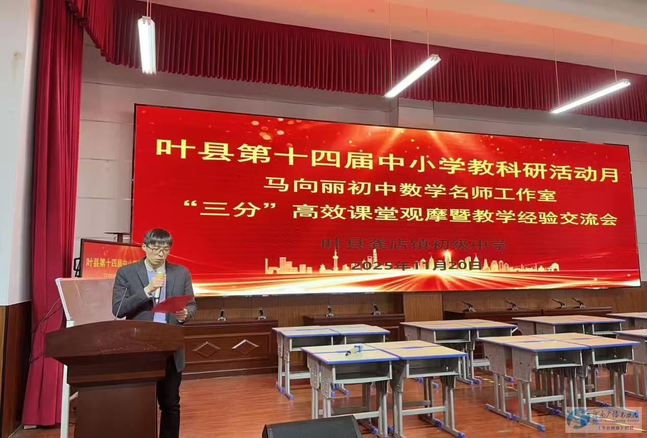 初冬的龚店镇初级中学报告厅内,教研的暖流驱散了寒意。2025年11月20日上午,叶县第14届教科研活动月马向丽“三分”高效课堂观摩交流会如约启幕。活动以“聚焦数学核心素养,共探高效课堂模式”为旨,汇聚舞钢实验中学、鲁山实验中学及叶县二实验、叶县九龙中学等17所县内外兄弟学校赴会,本次活动以课堂为基、以研为媒,共赴一场深耕教学、赋能成长的教研盛宴,对叶县红石榴课改联盟集团化办学起到了推动作用,为县域教育高质量发展注入鲜活动能。本次活动由教导处邱文灿主任主持。
