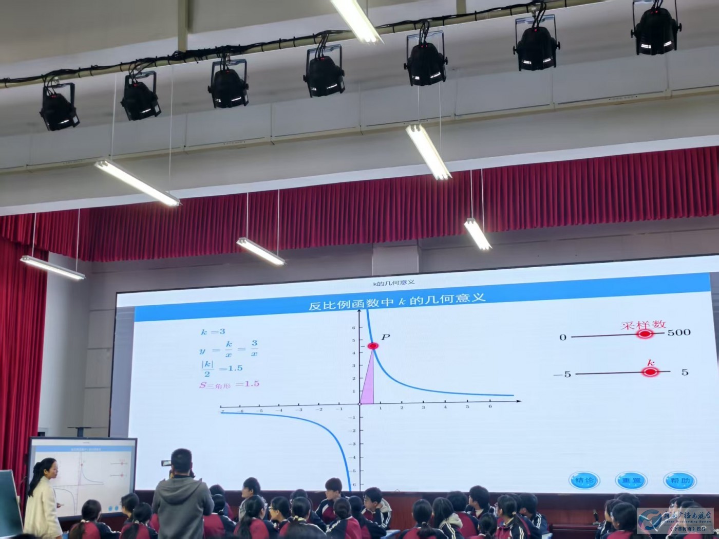 当反比例函数主题歌曲的旋律在教室响起,搭配AI娓娓道来李善兰先生将“函数”引入中国的故事,学生的目光瞬间被点亮——马向丽老师带来的这节《反比例函数k的几何意义》课,从一开始就带着数学文化的温度与技术赋能的新意,让抽象的“k”有了可触摸的生动模样。