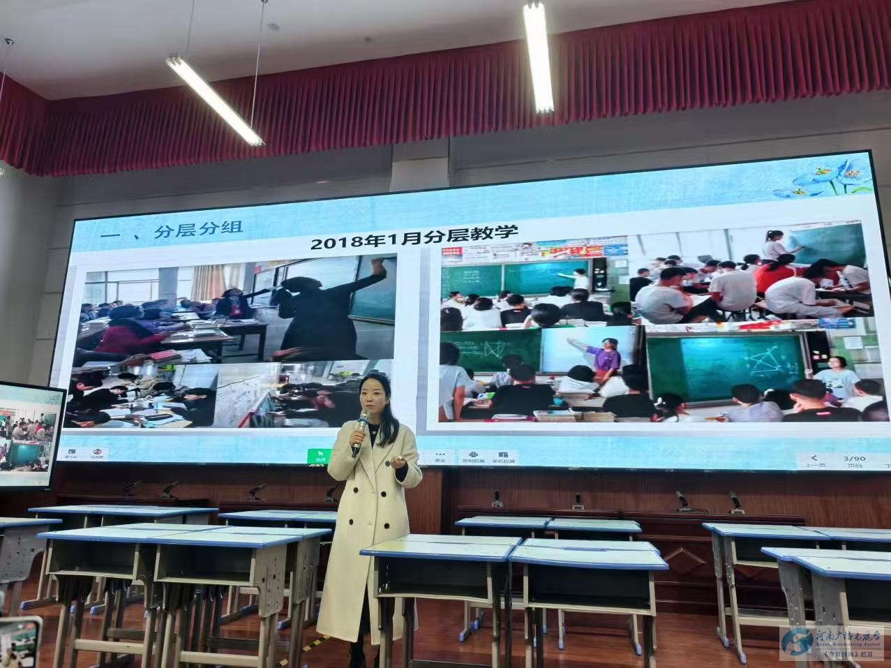 马老师围绕“分层分组分享”的三分课堂模式展开经验交流,首先衷心感谢侯老师在专业指导与课件制作上的无私帮助,称赞其敬业精神值得学习。她坦言三分课堂多年来持续优化,核心是立足农村学校学生基础差异大、优秀生源流失的实际,让学生在适配模式中逐步进步。