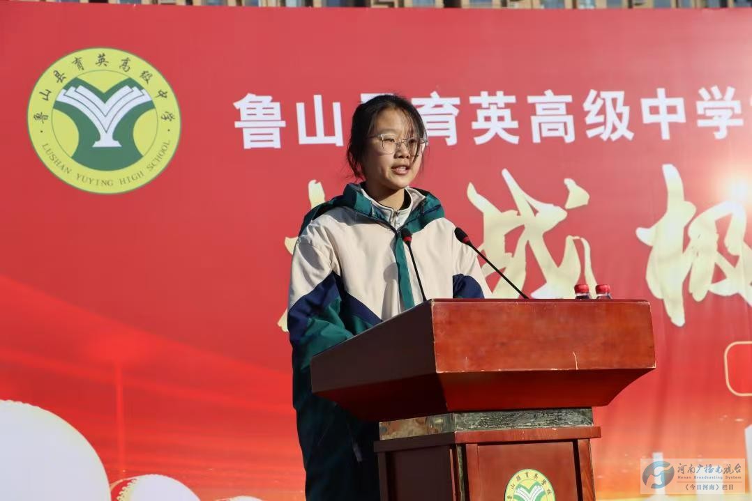 学生代表上台发言,表达了全体同学面对高考的坚定信念和青春誓言。他们心中有火,眼中有光,展现出了育英学子的蓬勃朝气和拼搏精神。