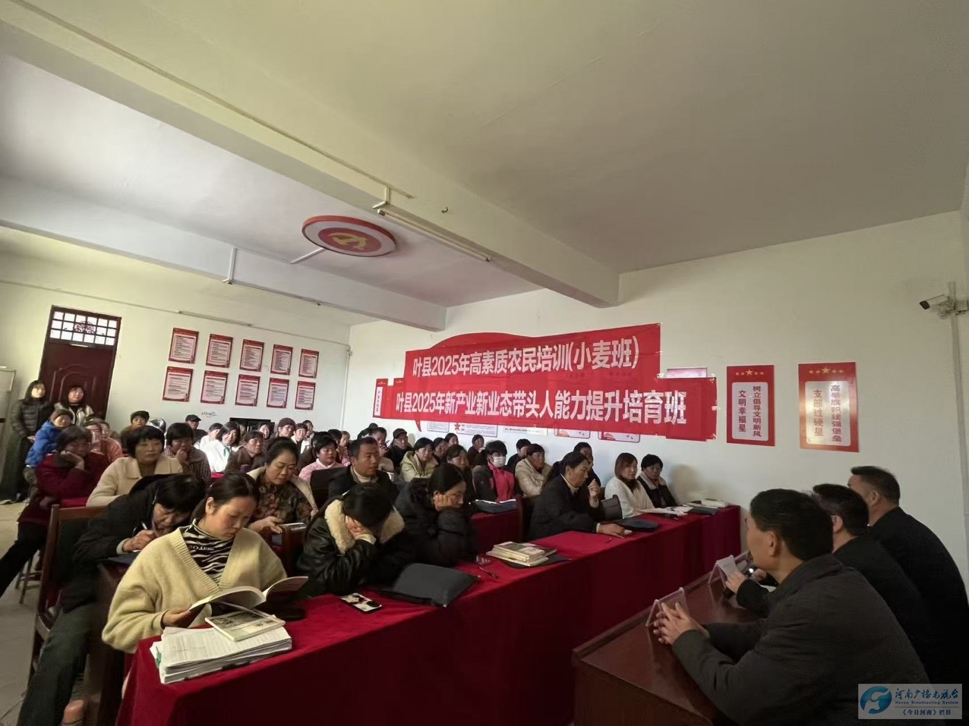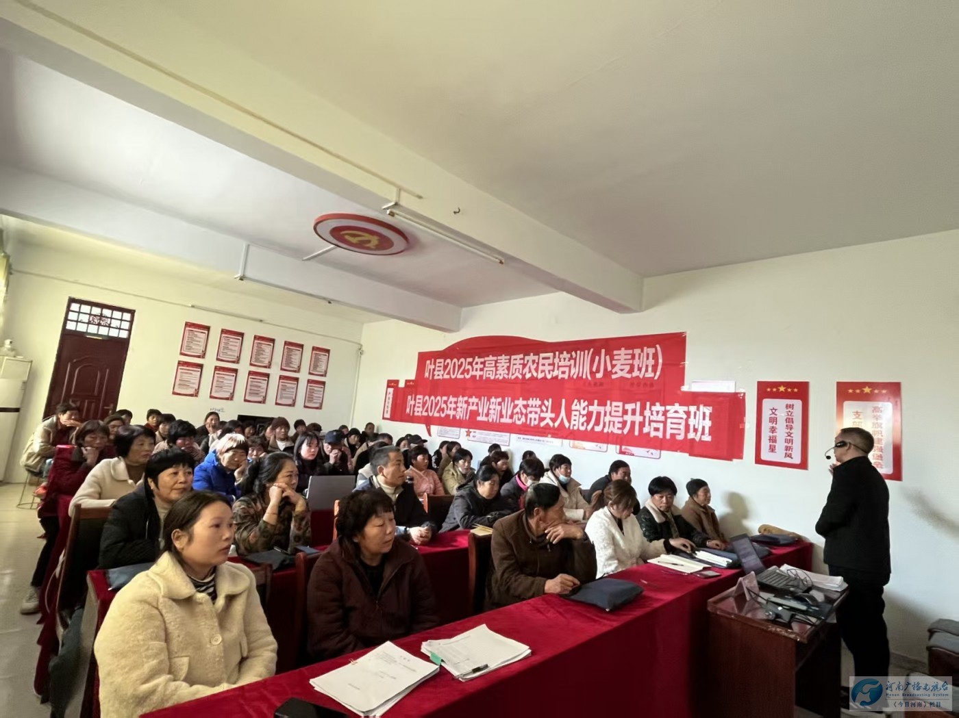 日前,由叶县农业农村局主办,叶县源泉职业培训学校承办的叶县2025年高素质农民新产业新业态带头人(小麦高效栽培技术)培训班在叶县龙泉镇北大营村室举行,来自叶县龙泉镇,叶邑镇、仙台镇的种植合作社,家庭农场以及种植大户共55人参加开班仪式。