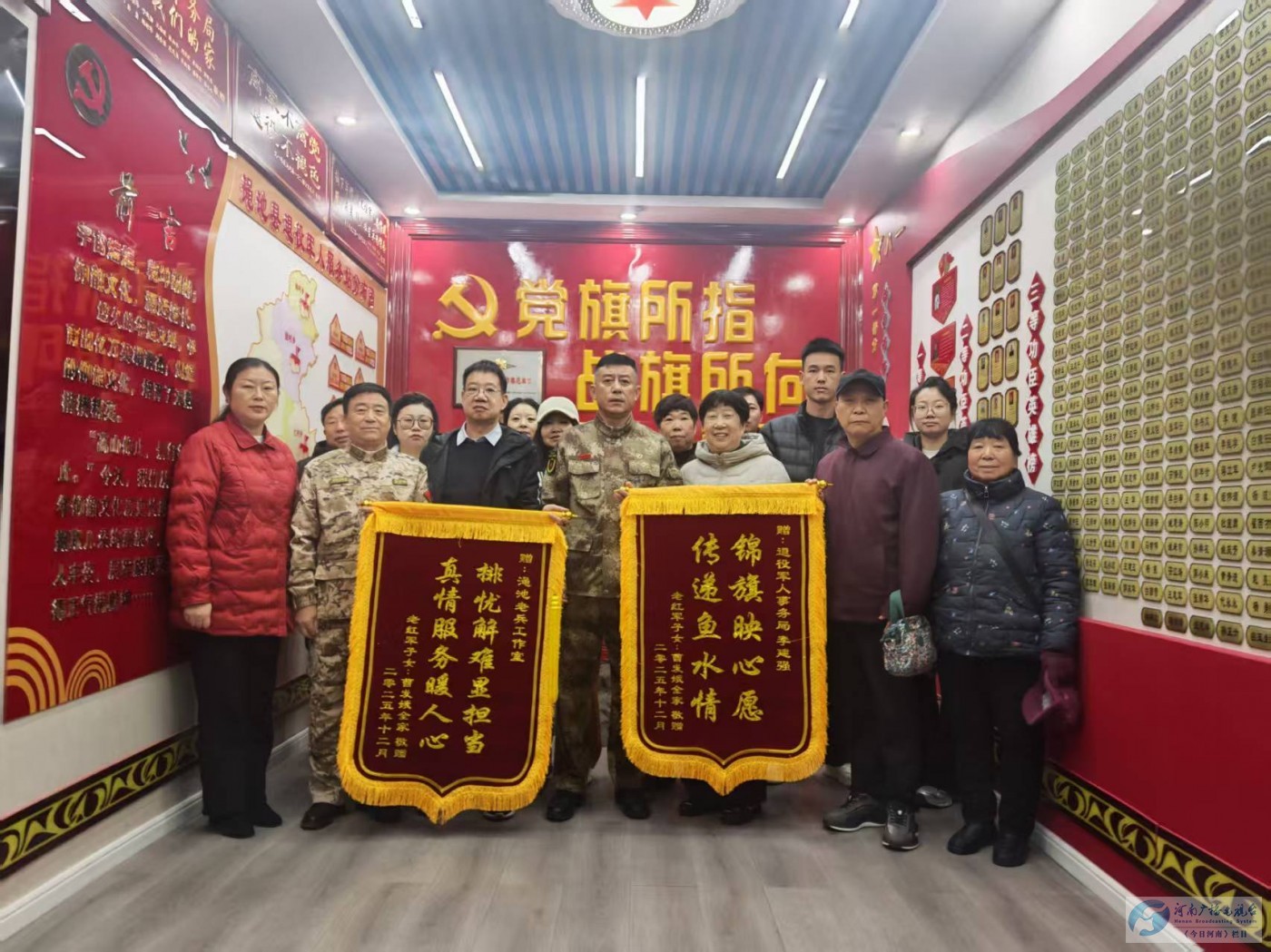 本网讯(邵玉周 林娜)2025年12月18日上午,渑池县退役军人事务局一楼大厅暖意融融。老红军曹长生的女儿曹发娥携亲属一行,将两面写有“排忧解难显担当,真情服务暖人心”“锦旗映心愿,传递鱼水情”的锦旗,分别赠予渑池县退役军人事务局和老兵工作室,以此感谢帮其实现为父辈寻根立传、正名荣光的夙愿。