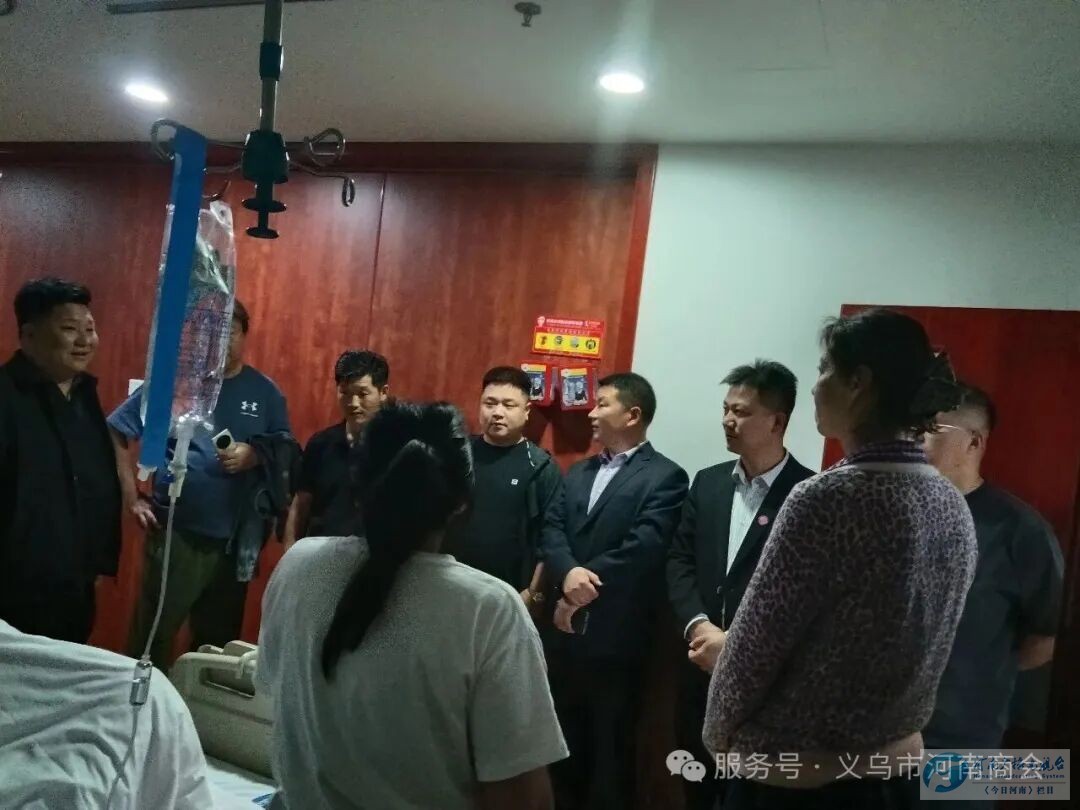 4月7日,带着浓浓的乡音与沉甸甸的关爱,义乌市河南商会会长韩永旗带领商会秘书长王延昌、常务副会长贾小兵、李全中、陈涛、李树杰、外联部部长李子强、副会长王飞庆等爱心代表一行,专程前往义乌市中心医院,看望慰问因病住院的河南籍老乡,将商会会员捐赠的 1 万元现金善款,加上会员们水滴筹募集的千余元爱心款,一并送到患者手中,用实际行动为患病老乡送去温暖与希望,诠释了乡梓情深、互助互爱的真挚情怀。