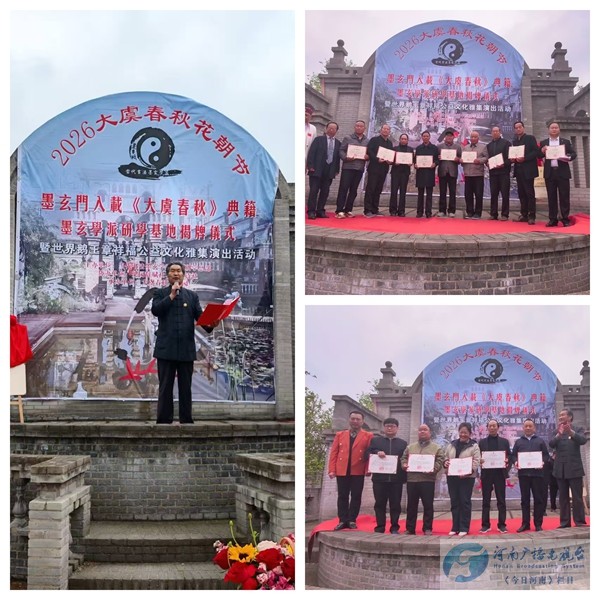 春和景明,翰墨传薪,文脉赓续,雅聚春秋。2026年4月9日,2026大虞春秋花朝节——墨玄门入载《大虞春秋》典籍、墨玄学派研学基地揭牌仪式暨世界鹅王章祥福公益演出文化雅集活动,在虞城大虞春秋文化园圆满举办。此次活动汇聚众多文化名家、书画界同仁与教育界人士,共同见证当代书法墨玄学派(墨玄门)扎根中原、载入典籍的重要时刻,为中华传统书道文化传承创新与文旅融合发展写下浓墨重彩的一笔。